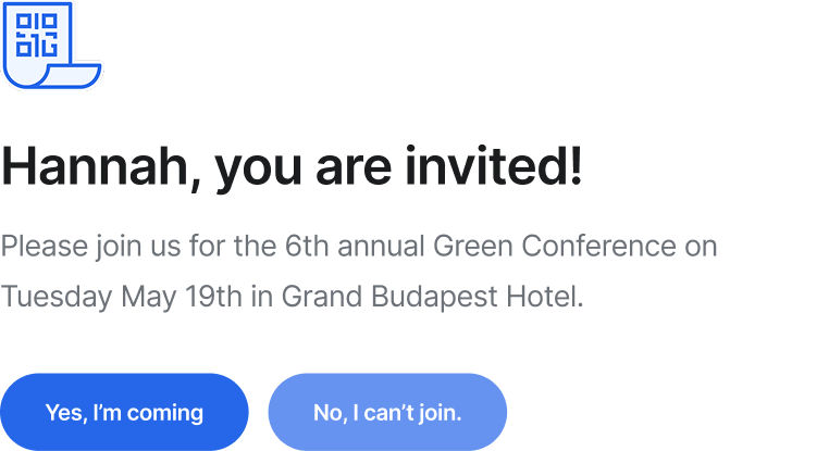 Each guest receives a unique, non-transferable invitation with a QR code.