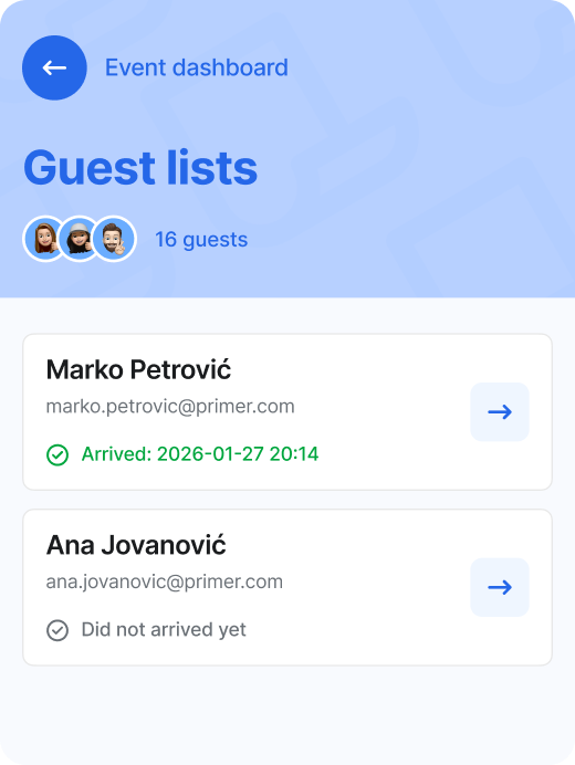 Everything you need for a clean invitation workflow - from sending to entrance validation.